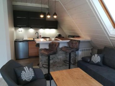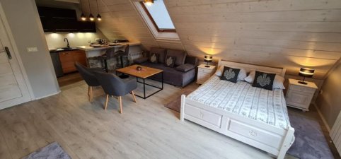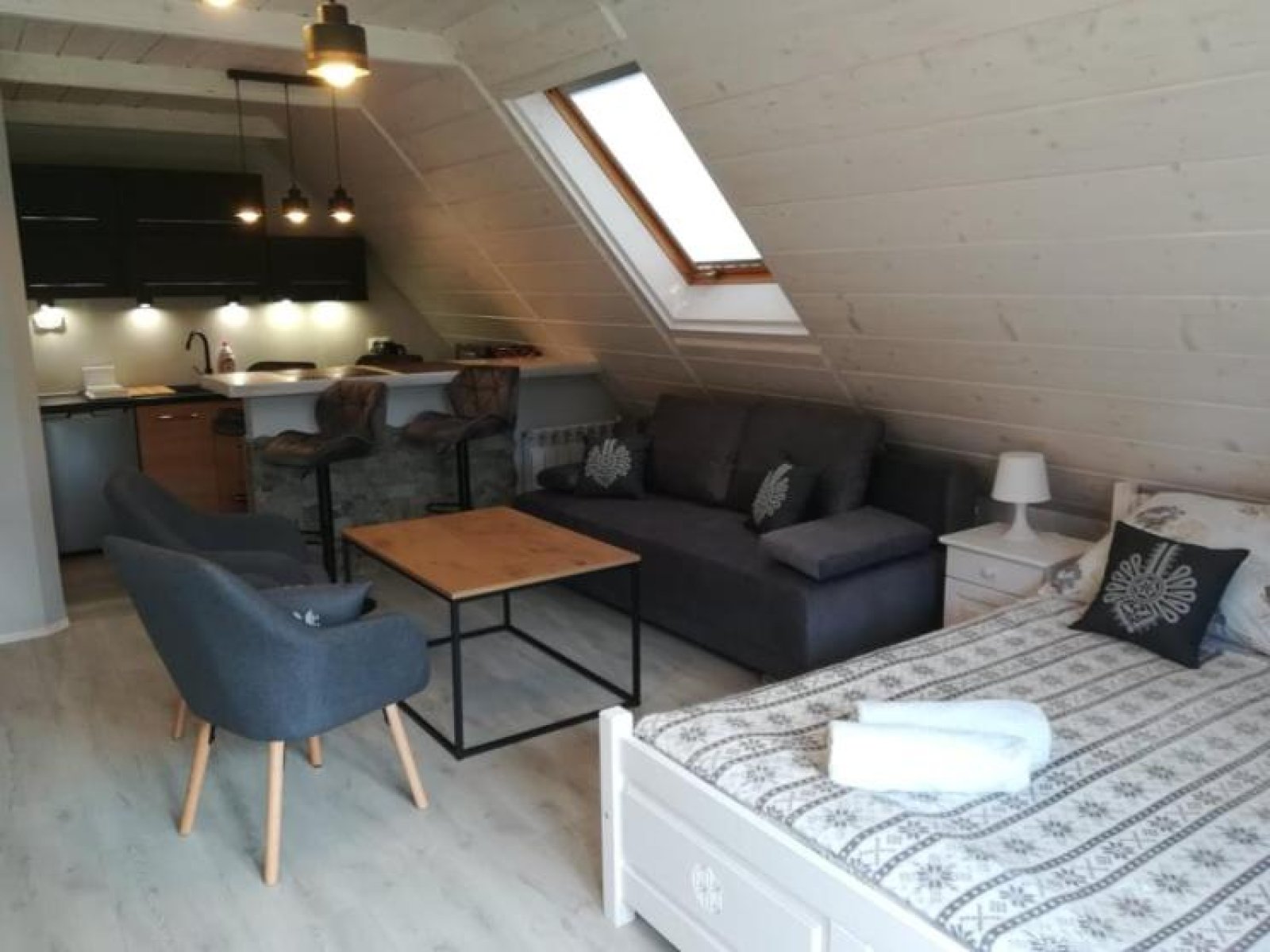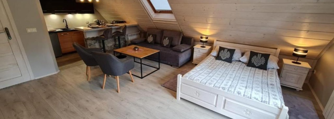 Nasz komfortowy apartament jednopokojowy to idealne miejsce dla rodzin lub osób ceniących swobodę i komfort podczas pobytu w górach. Apartament posiada prywatne wejście oraz własną kuchnię, co daje pełną niezależność podczas pobytu.