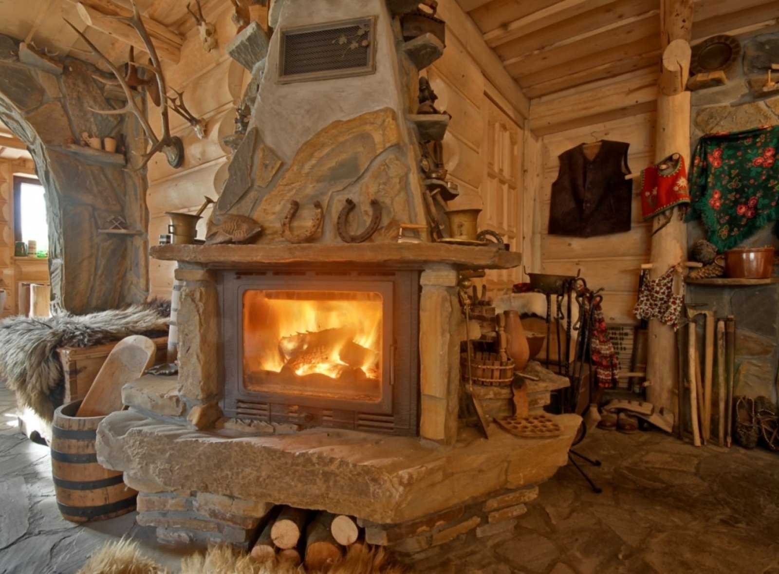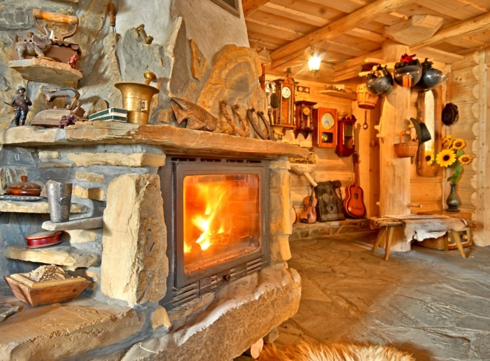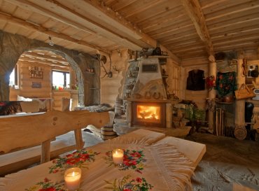 Nasza sala kominkowa to przytulne i klimatyczne miejsce, idealne na wieczorny relaks po dniu pełnym górskich wrażeń. Wnętrze utrzymane w góralskim stylu z drewnianymi ławeczkami i stołami oraz mnóstwem regionalnych pamiątek z różnych zakątków Polski przypomina małe muzeum, w którym każdy detal opowiada historię gór i tradycji różnych regionów.