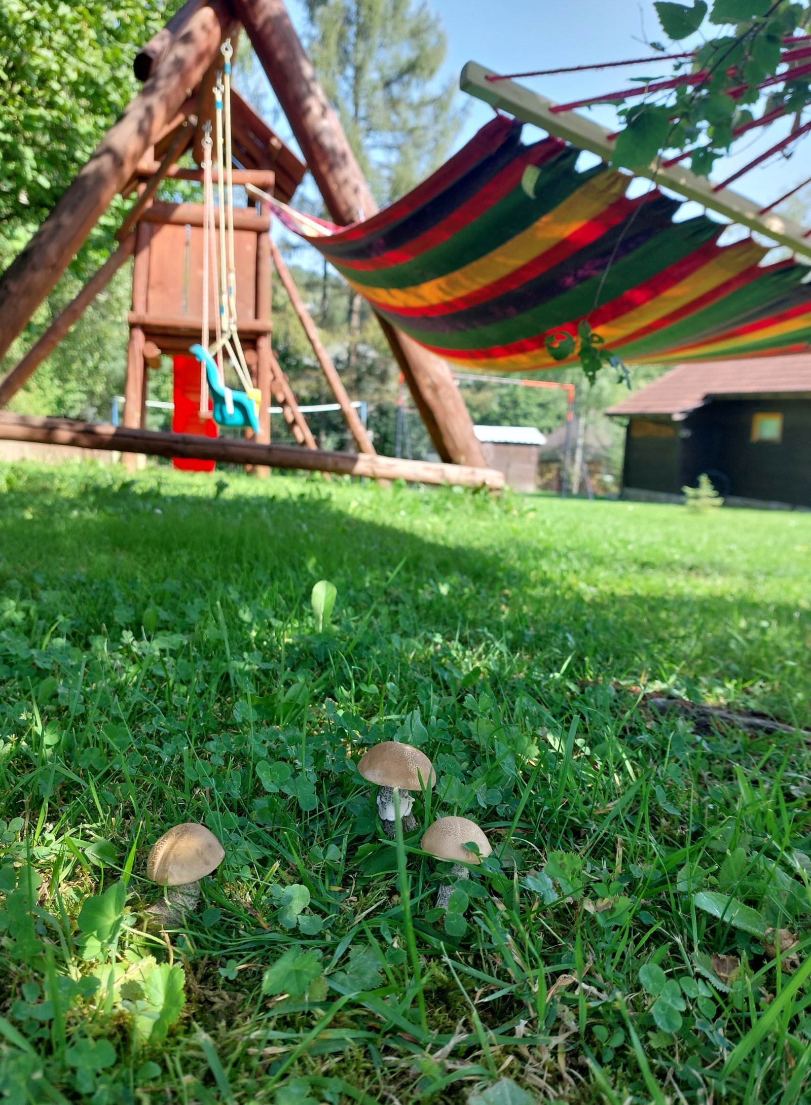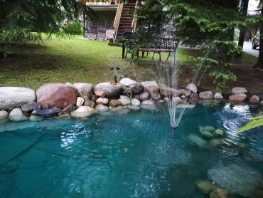 W ogrodzie znajduje się mnóstwo wygodnych ławeczek, dzięki czemu każdy może znaleźć swoje ulubione miejsce. Dla Gości przygotowano huśtawkę przy oczku wodnym, a dla dzieci – plac zabaw z piaskownicą.