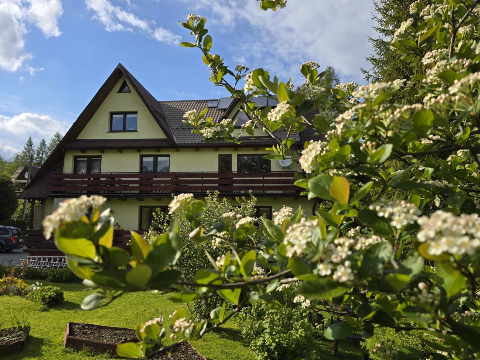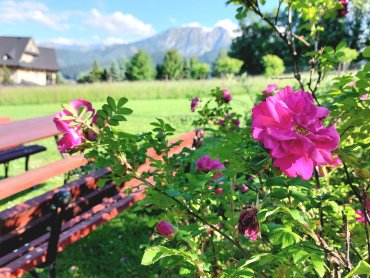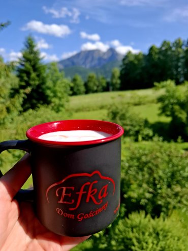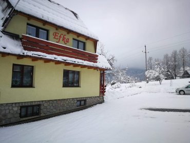 Dom Gościnny Efka otoczony jest przestronnym, zadbanym ogrodem, w którym wśród rozsianych drzew i kwiatów każdy Gość znajdzie swoje zaciszne miejsce do wypoczynku. Z ogrodu roztacza się widok na piękną panoramę Tatr, tworząc idealne warunki do relaksu i wypoczynku na świeżym powietrzu. Kawałek lasu odgradza posesję od głównej drogi, gwarantując ciszę i kameralną atmosferę.